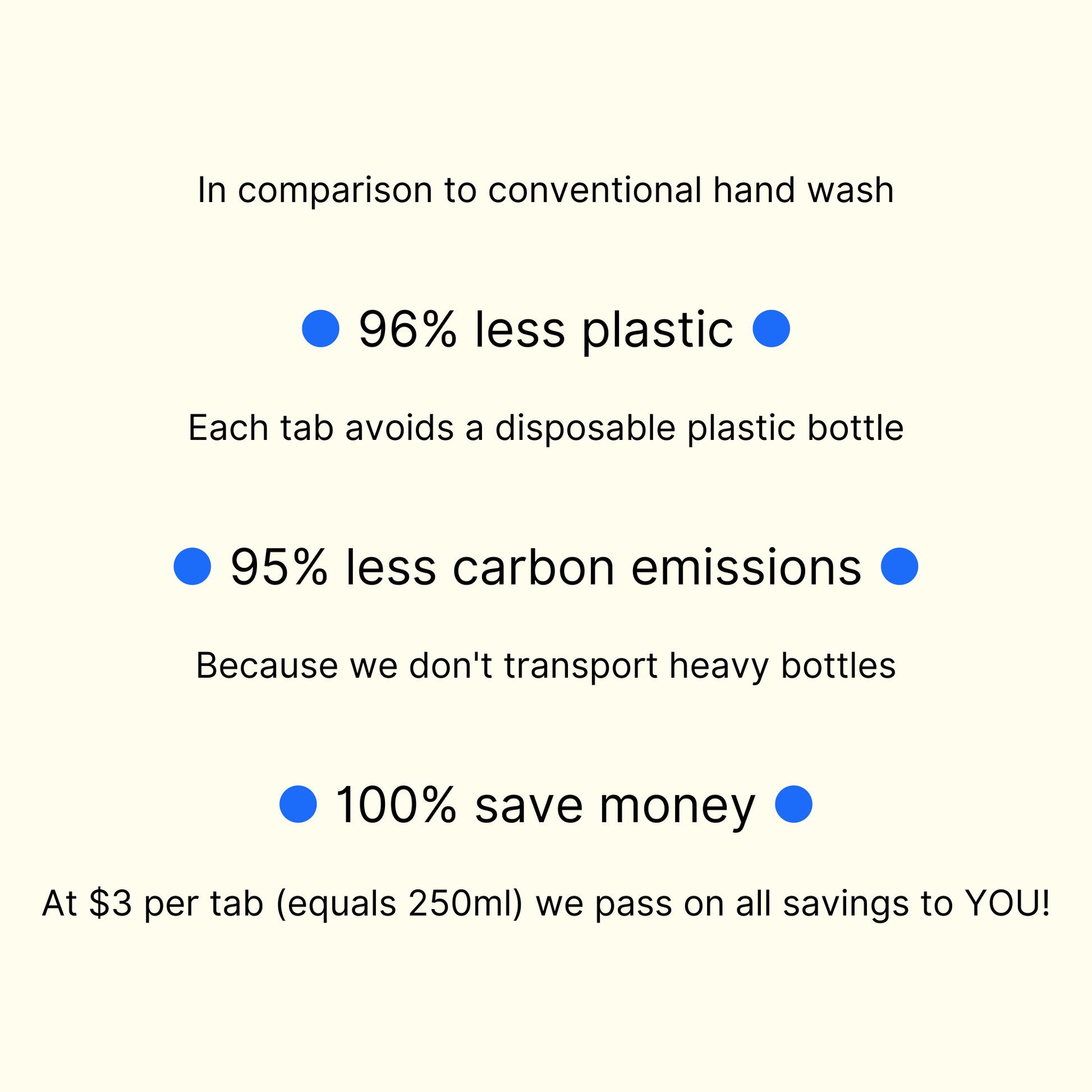 - You save up to 95% carbon emissions as we don't ship heavy bottles across the country.