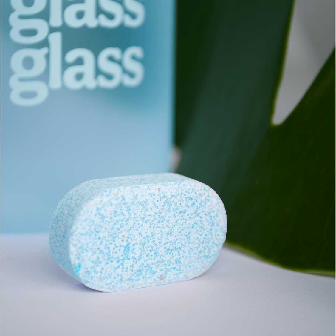 Glass: Sodium Bicarbonate, Citric Acid Anhydrous, Sodium C14-16 Olefin Sulfonate, Sodium Chloride, PEG-6000, Sodium Benzoate, Fragrance, Dye.