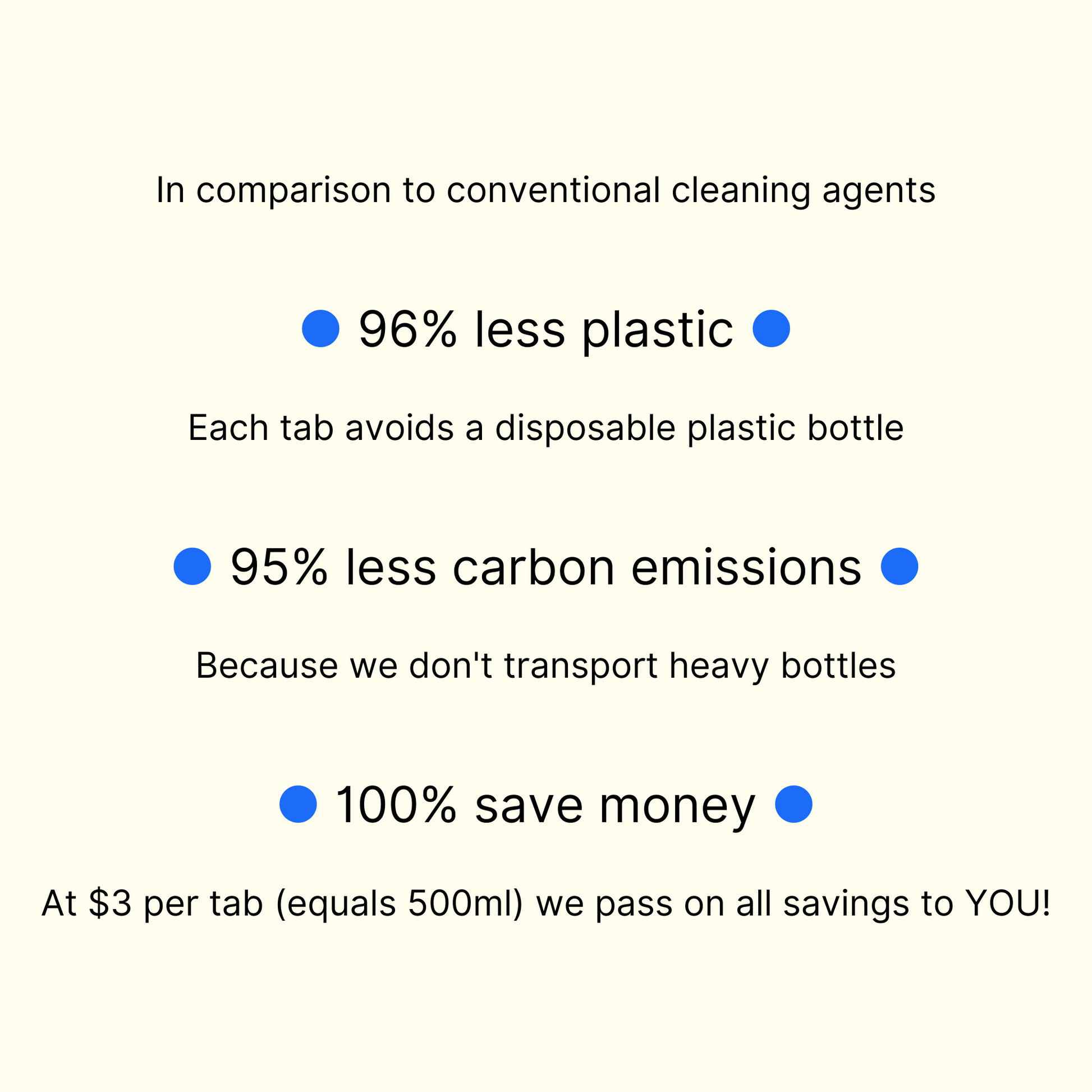 - You save up to 95% carbon emissions as we don't ship heavy bottles across the country.
